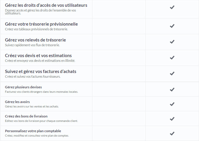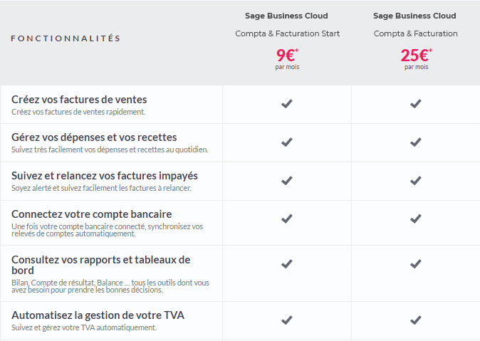 Fonctionnalités de Sage Business Cloud Compta & Facturation Start vs Sage Business Cloud Compta & Facturation